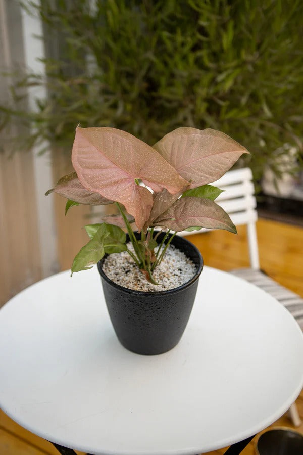Con su hermoso follaje variegado y su bajo mantenimiento, el Syngonium podophyllum Pink es perfecto para aquellos que buscan una planta que añada color, frescura y estilo a su hogar o espacio de trabajo.